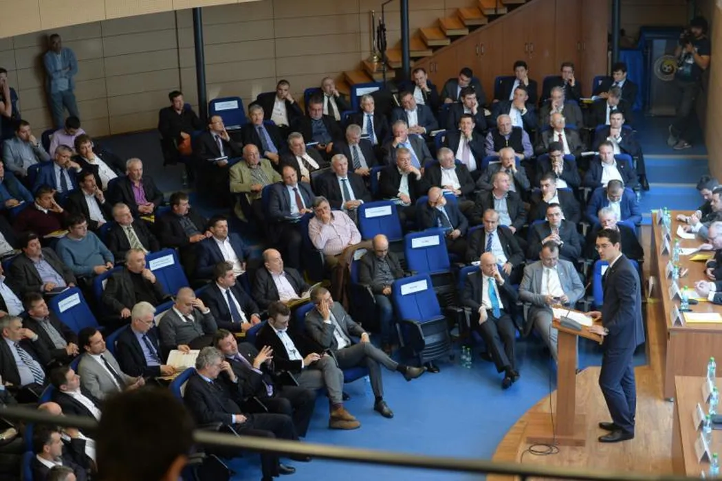 Adunarea Generală în care nu s-a întâmplat nimic. Reprezentanții cluburilor nu au adus în discuție schimbarea sistemului competițional. FOTO | S-a dormit intens în timpul ședinței, iar tonul l-a dat Iorgulescu