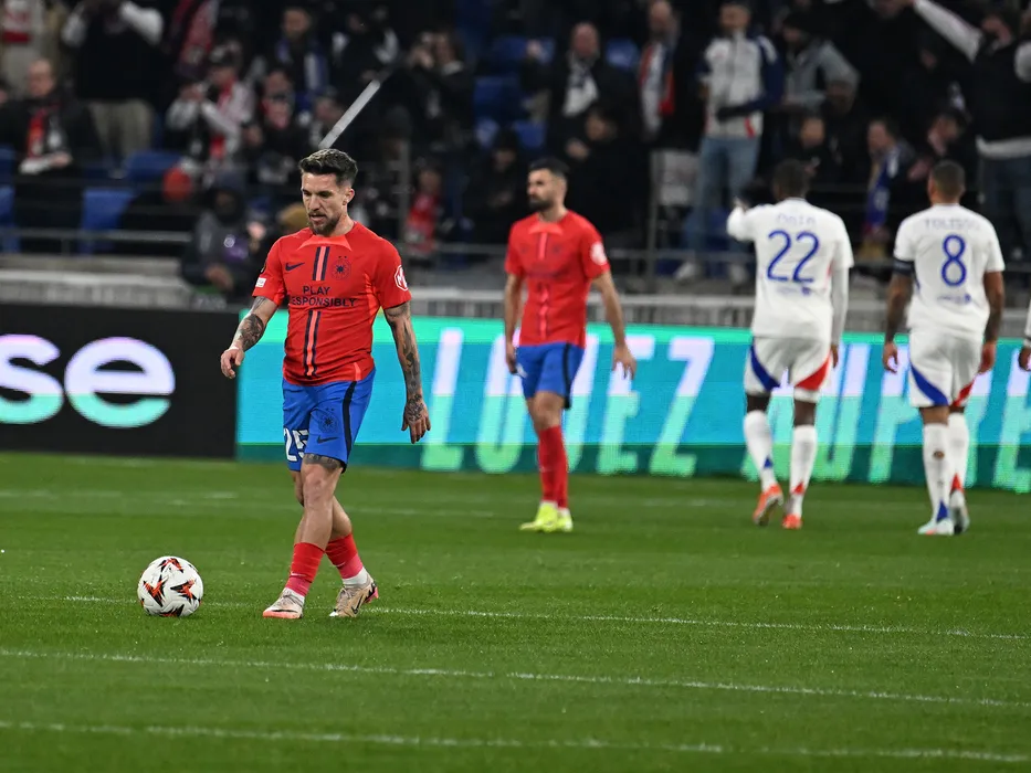 Alexandru Mihail Baluță reacționează in meciul de fotbal dintre Olympique Lyon si FCSB din cadrul UEFA Europa League, desfasurat pe Groupama Arena din Lyon, joi 13 martie 2025. © FOTO:Razvan Pasarica/SPORT PICTURES