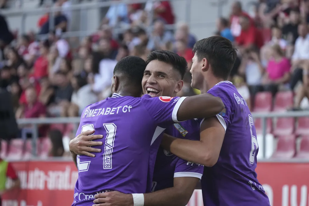 Ricardo Manuel Pinho Matos se bucura dupa un gol marcat in meciul de fotbal dintre UTA Arad si FC Arges, contand pentru Superliga Superbet, desfasurat pe Arena Francisc Neuman din Arad, sambata 13 septembrie 2025. © FOTO:Alexandra Fechete/SPORT PICTURES
