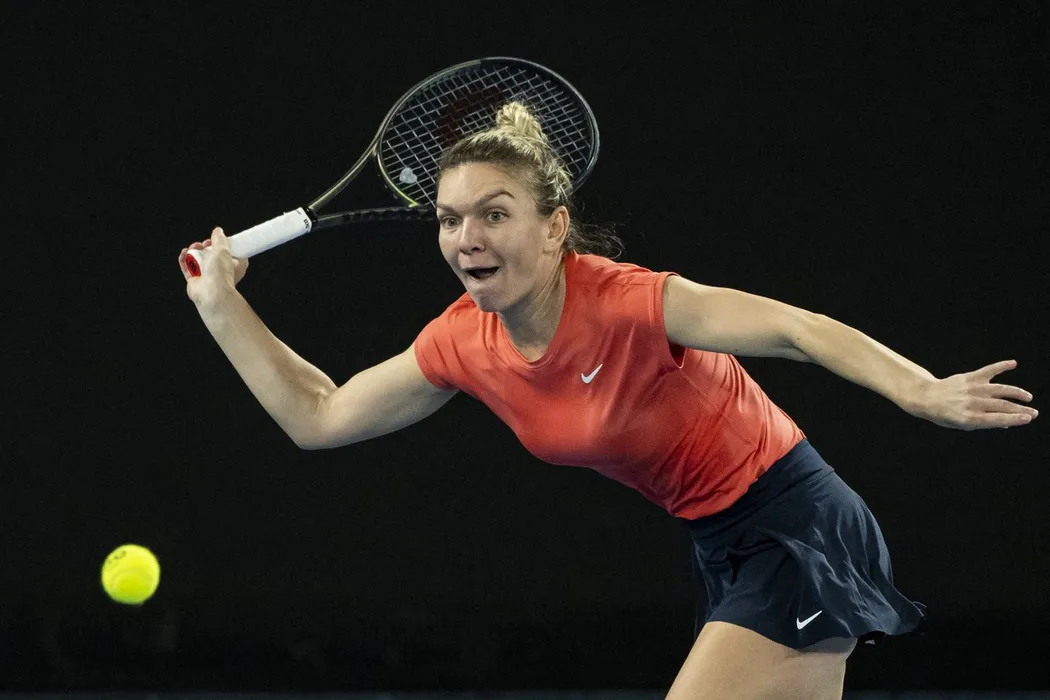 Romania's Simona Halep hits a return against China's Zheng Qinwen during their women's singles semi-final match at the Melbourne Summer Set tennis tournament in Melbourne on January 8, 2022.,Image: 651365337, License: Rights-managed, Restrictions: -- IMAGE RESTRICTED TO EDITORIAL USE - STRICTLY NO COMMERCIAL USE --, Model Release: no, Credit line: Profimedia