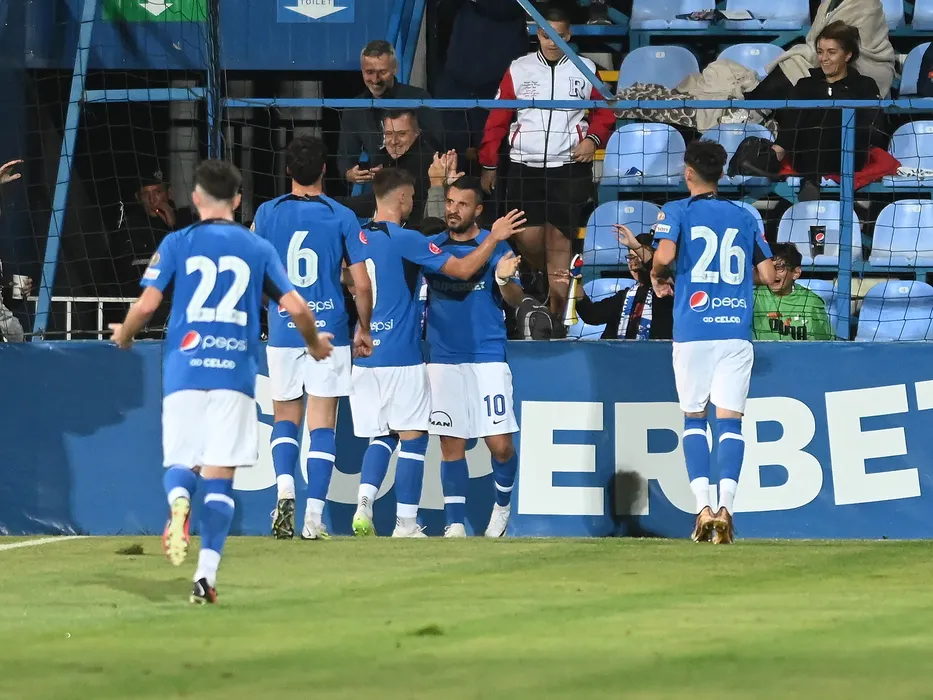 Constantin Valentin Budescu se bucura dupa un gol marcat alaturi de fotbalistii constanteni in meciul de fotbal dintre Farul Constanta si Sepsi OSK Sfantu Gheorghe, contand pentru Superliga Superbet, desfasurat pe Stadionul central al Academiei Gheorghe Hagi din Ovidiu, sambata 30 septembrie 2023. © FOTO:Razvan Pasarica/SPORT PICTURES