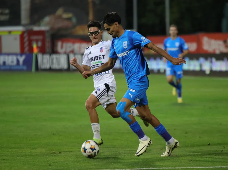 Stefan Baiaram si Narcis Cosmin Ilas in meciul de fotbal dintre FC Botosani si Universitatea Craiova, contand pentru Superliga Superbet, desfasurat pe Stadionul Municipal din Botosani, duminica 31 august august 2025. © FOTO:Ionut Tabultoc/SPORT PICTURES