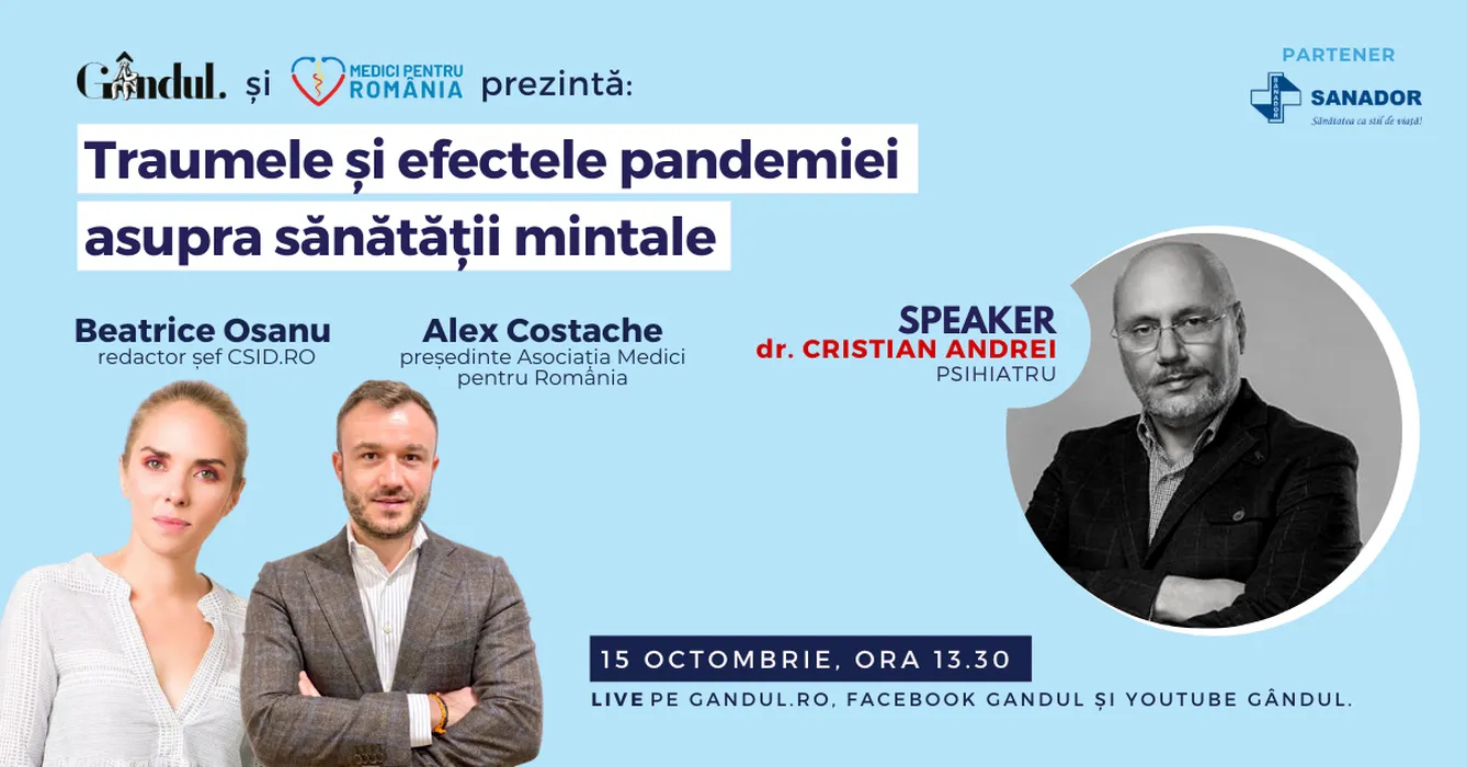 Află care sunt efectele statului în casă asupra psihicului și cum controlăm anxietatea pe timp de pandemie! Astăzi de la 13.30 în webinarul LIVE – Traumele și efectele pandemiei asupra sănătății mintale!