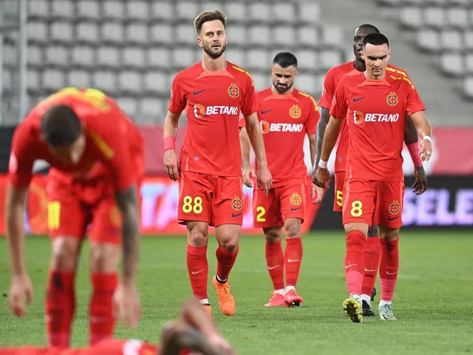 Damjan Djokovic se bucura dupa un gol marcat alaturi de Valentin Cretu, Joyskim Aurelien Dawa Tchakonte si Adrian Gheorghe Sut in meciul de fotbal dintre FCSB si TSKA 1948 Sofia, contand pentru UEFA Europa Conference League, desfasurat pe Stadionul National Arcul de Triumf din Bucuresti, joi 3 august 2023. © FOTO:Razvan Pasarica/SPORT PICTURES