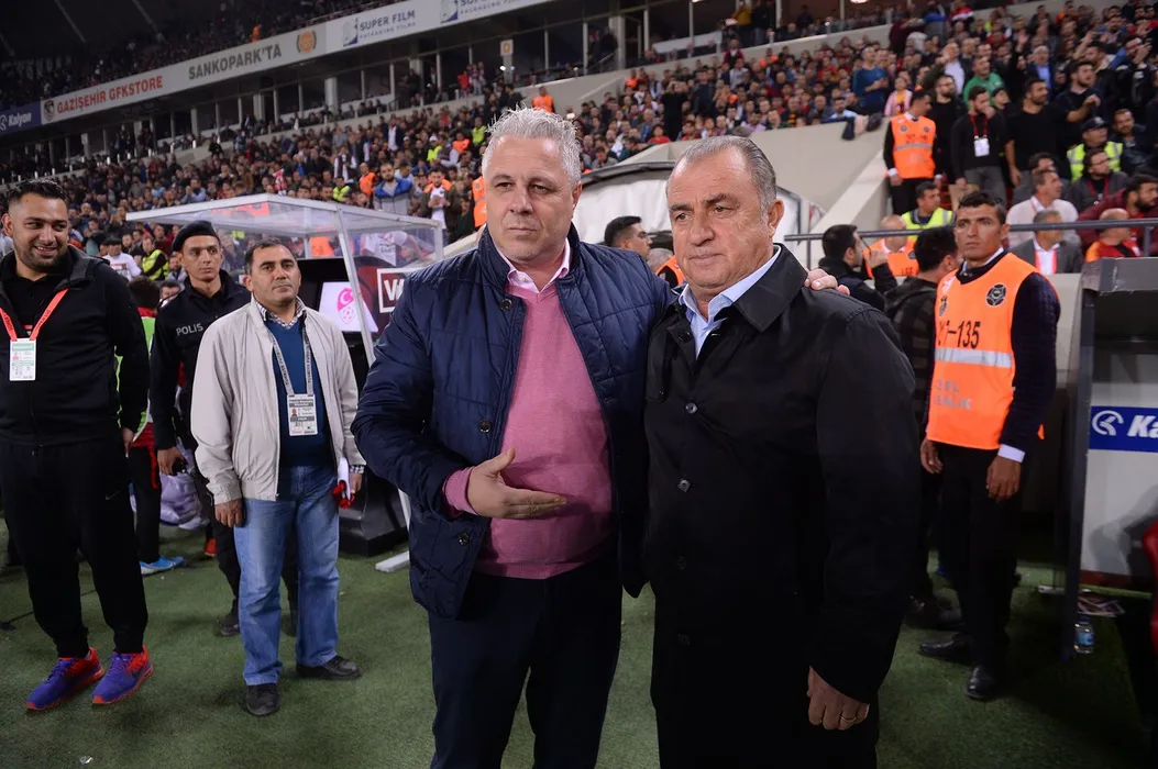 Coach Marius Sumudica (L) of Gaziantep FK and Coach Fatih Terim of Galatasaray during the Turkish Super League football match between Gaziantep FK and Galatasaray at Kalyon Stadium in Gaziantep , Turkey on November 09 , 2019., Image: 481988090, License: Rights-managed, Restrictions: Not Available for publication in Turkey., Model Release: no, Credit line: Seskimphoto / Seskimphoto / Profimedia