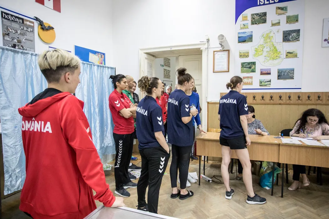 Alegeri europarlamentare 2019 și referendum justiție: naționala de handbal s-a mobilizat și a fost la vot între două antrenamente. „Am vrut să votez pentru că fac parte din generația care va trăi în România după aceste alegeri” | GALERIE FOTO