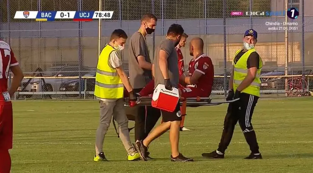 Alertă la U Cluj! Gabriel Tamaș a ieșit pe targă de pe teren și a fost transportat la spital | FOTO & VIDEO