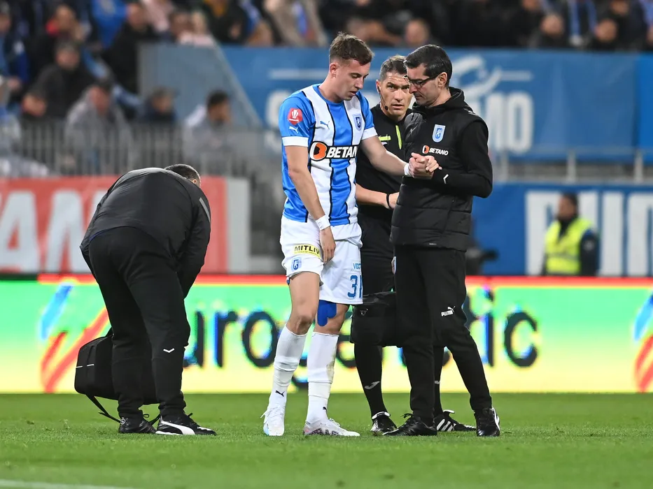 Alertă la Universitatea Craiova! Doi jucători abia reveniți de la echipa națională s-au accidentat în meciul cu CFR Cluj, iar Eugen Neagoe a fost nevoit să facă două schimbări în prima repriză