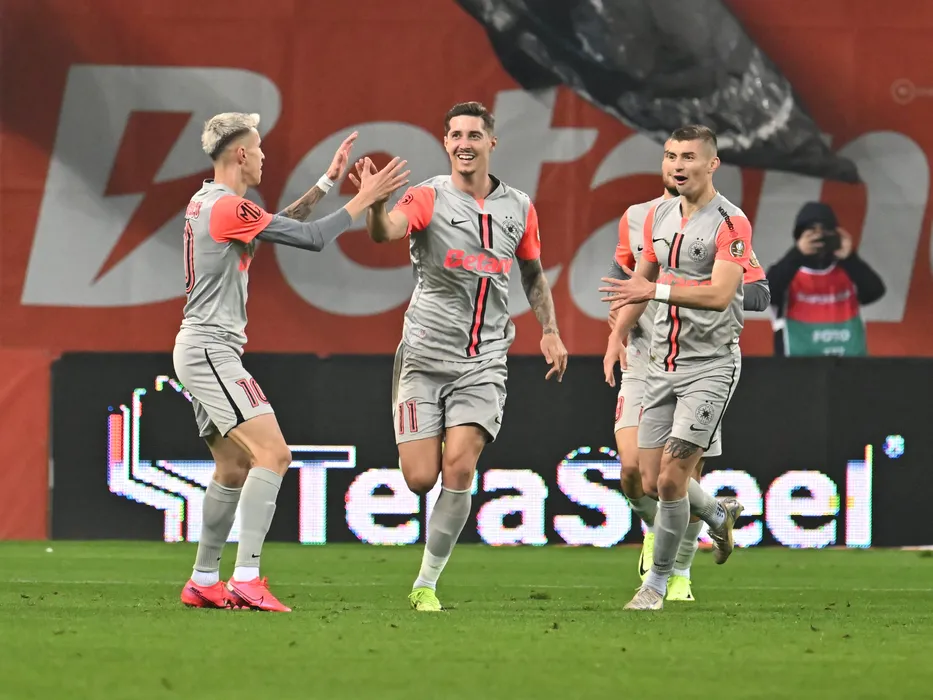David Raul Miculescu se bucură dupa un gol marcat alături de Octavian George Popescu si Florin Lucian Tănase in meciul dintre Universitatea Craiova si FCSB, contand pentru Superliga Superbet, desfasurat pe Stadionul Ion Oblemenco din Craiova, duminica 3 noiembrie 2024. © FOTO:Razvan Pasarica/SPORT PICTURES