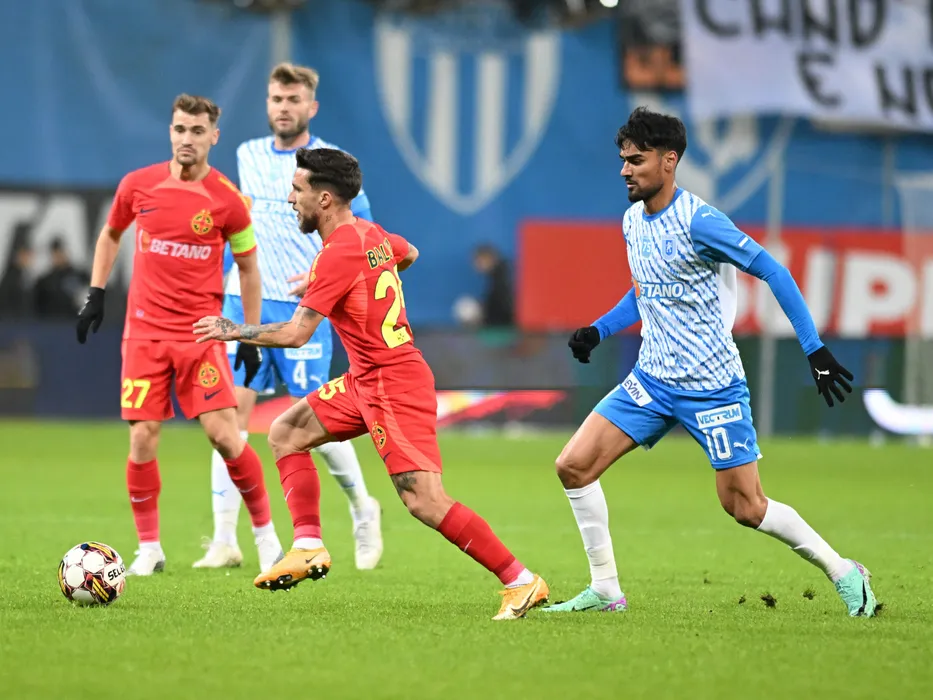 Alex Băluță, umilit de galeria Universității Craiova la derby-ul cu FCSB! Ce banner legat de soția fotbalistului au afişat ultraşii olteni. FOTO