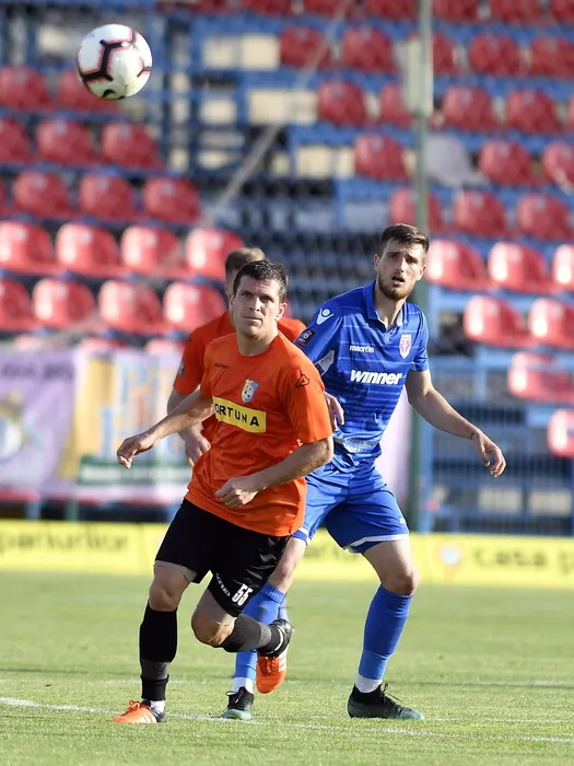 Alexandru Bourceanu si Mihai Capatina in meciul de fotbal dintre FC Voluntari si Dunarea Calarasi, din cadrul playout-ului Ligii 1 Betano, desfasurat pe Stadionul Anghel Iordanescu din Voluntari, duminica 19 mai 2019. © FOTO:Razvan Pasarica/SPORT PICTURES