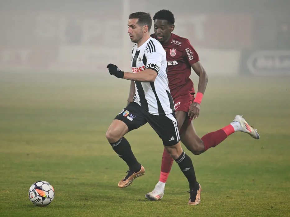 Mihaita Alexandru Chipciu si Beni Jean Luc Nkololo în meciul de fotbal dintre Universitatea Cluj si CFR Cluj, contând pentru Superliga Superbet, desfășurat pe Cluj Arena din Cluj Napoca, luni 9 decembrie 2024. © FOTO:Răzvan Pasarica/SPORT PICTURES