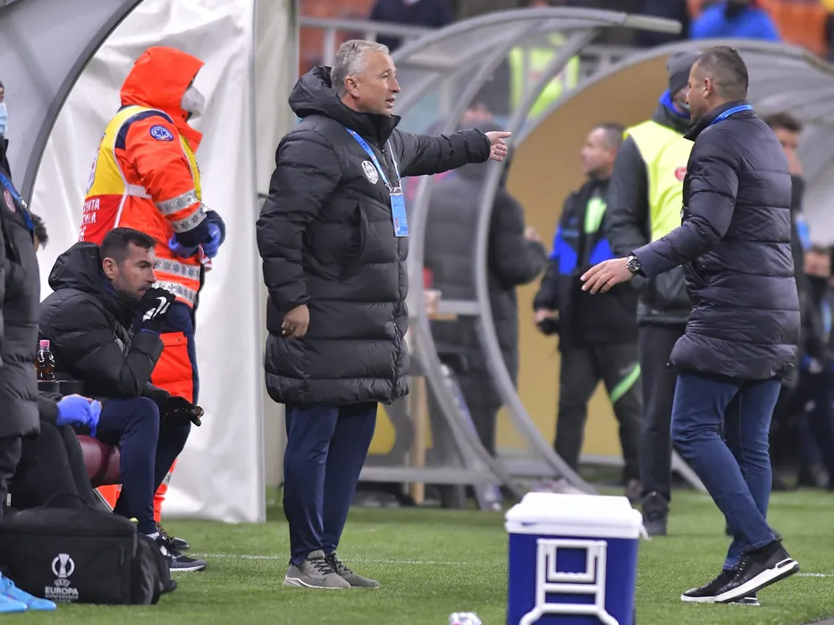 Valeriu Bordeanu si Dan Petrescu reactioneaza in meciul de fotbal dintre FCSB si CFR Cluj, contand pentru Liga 1 Casa Pariurilor, desfasurat pe Arena Nationala din Bucuresti, duminica 23 ianuarie 2022. © FOTO:Razvan Pasarica/SPORT PICTURES