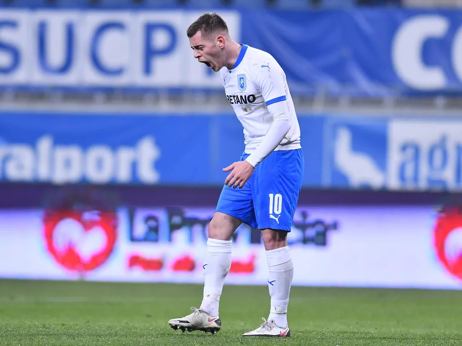 Alexandru Cicaldau suparat dupa o ratare in meciul de fotbal dintre Universitatea Craiova si FCSB, contand pentru Liga 1 Casa Pariurilor, desfasurat fara spectatori pe Stadionul Ion Oblemenco din Craiova, vineri 18 decembrie 2020. © FOTO:Razvan Pasarica/SPORT PICTURES