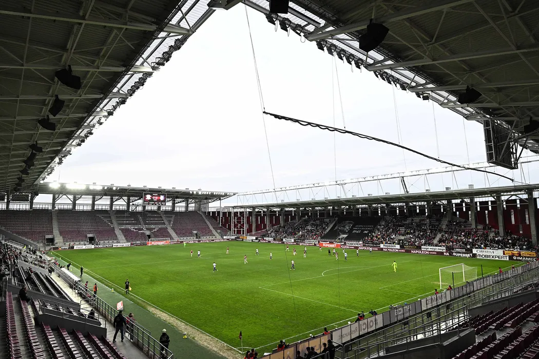Imagine de ansamblu cu Superbet Arena-Giulesti din Bucuresti, cu copii in tribuna, realizata la meciul de fotbal dintre Rapid Bucuresti si FC Arges, din cadrul Play off-ului Superligii Superbet, luni 13 aprilie 2026. © FOTO:Razvan Pasarica/SPORT PICTURES