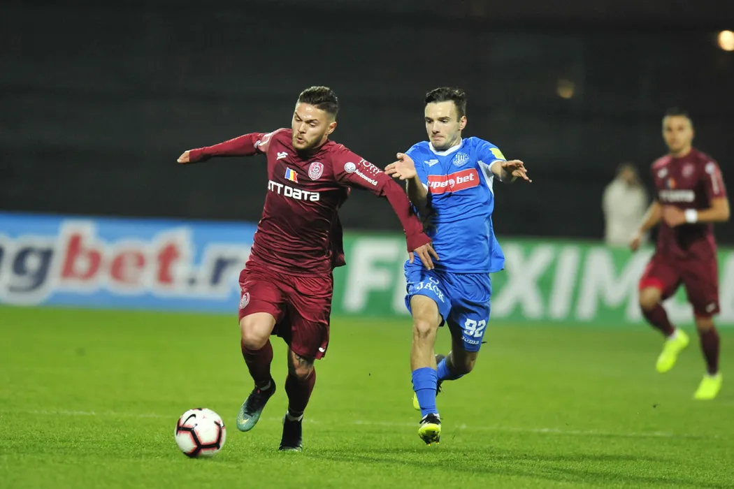 Alexandru Ionita (S), de CFR Cluj, lupta pentru balon cu Kamer Qaka (D), de la CSM Politehnica Iasi, in timpul meciului de fotbal din etapa a XII-a a Ligii 1, disputat pe stadionul Dr. Constantin Radulescu din Cluj-Napoca, vineri, 19 octombrie 2018. DAN HORIA TAUTAN / MEDIAFAX FOTO