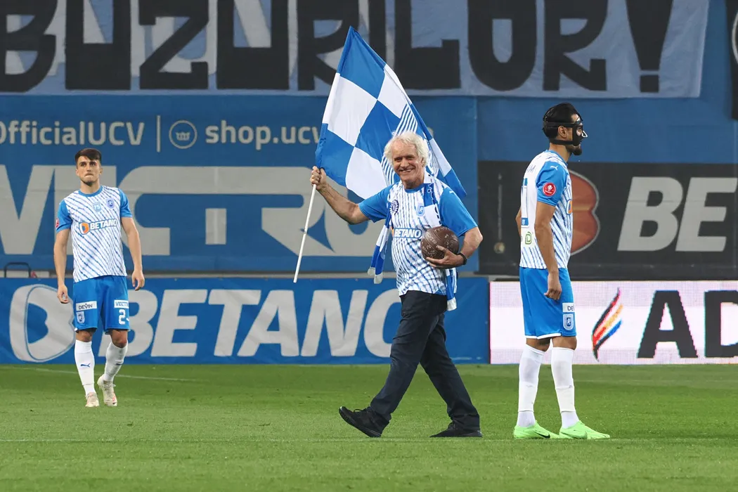 Ștefan Baiaram alături de ambasadorul meciului de fotbal dintre Universitatea Craiova si Rapid Bucuresti, contând pentru Play off-ul Superligii Superbet, desfășurat pe Stadionul Ion Oblemenco din Craiova, sambata 30 martie 2024. © FOTO:SPORT PICTURES