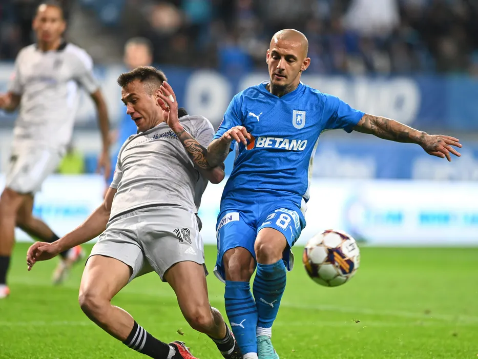 Gabriel Carlos Compagnucci si Ionut Alexandru Mitrita in meciul de fotbal dintre Universitatea Craiova si FC U Craiova, contand pentru Superliga Superbet, desfasurat pe Stadionul Ion Oblemenco din Craiova, sambata 4 noiembrie 2023. © FOTO:Razvan Pasarica/SPORT PICTURES