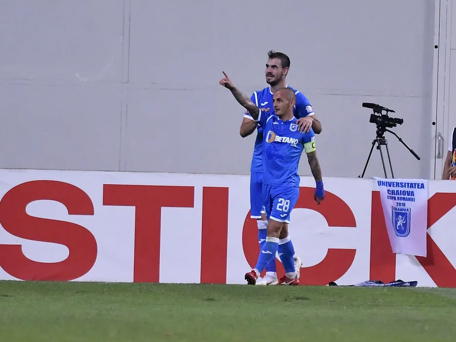 Bucurie a fotbalistilor Craiovei cu Elvir Koljic si Alexandru Mitrita in meciul de fotbal dintre Universitatea Craiova si Dinamo Bucuresti, din cadrul Ligii 1 Betano, desfasurat pe Stadionul Ion Oblemenco din Craiova, sambata 1 septembrie 2018. © FOTO Razvan Pasarica/SPORT PICTURES