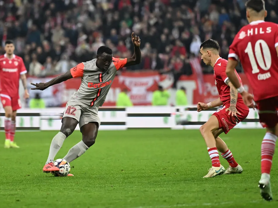 Baba Alhassan marchează un gol de lângă Raul Marian Oprut in meciul de fotbal dintre Dinamo Bucuresti si FCSB, contand pentru Play off-ul Superligii Superbet, desfasurat pe Arena Nationala din Bucuresti, duminica 30 martie 2025. © FOTO:Razvan Pasarica/SPORT PICTURES