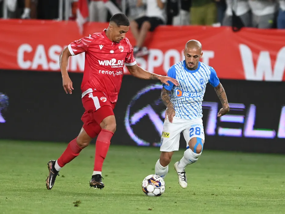 Quentin Alexandre Julien Bena si Ionut Alexandru Mitrita in meciul de fotbal dintre Dinamo Bucuresti si Universitatea Craiova, din cadrul Superligii Superbet, desfasurat pe Stadionul National Arcul de Triumf din Bucuresti, luni 17 iulie 2023. © FOTO:Razvan Pasarica/SPORT PICTURES