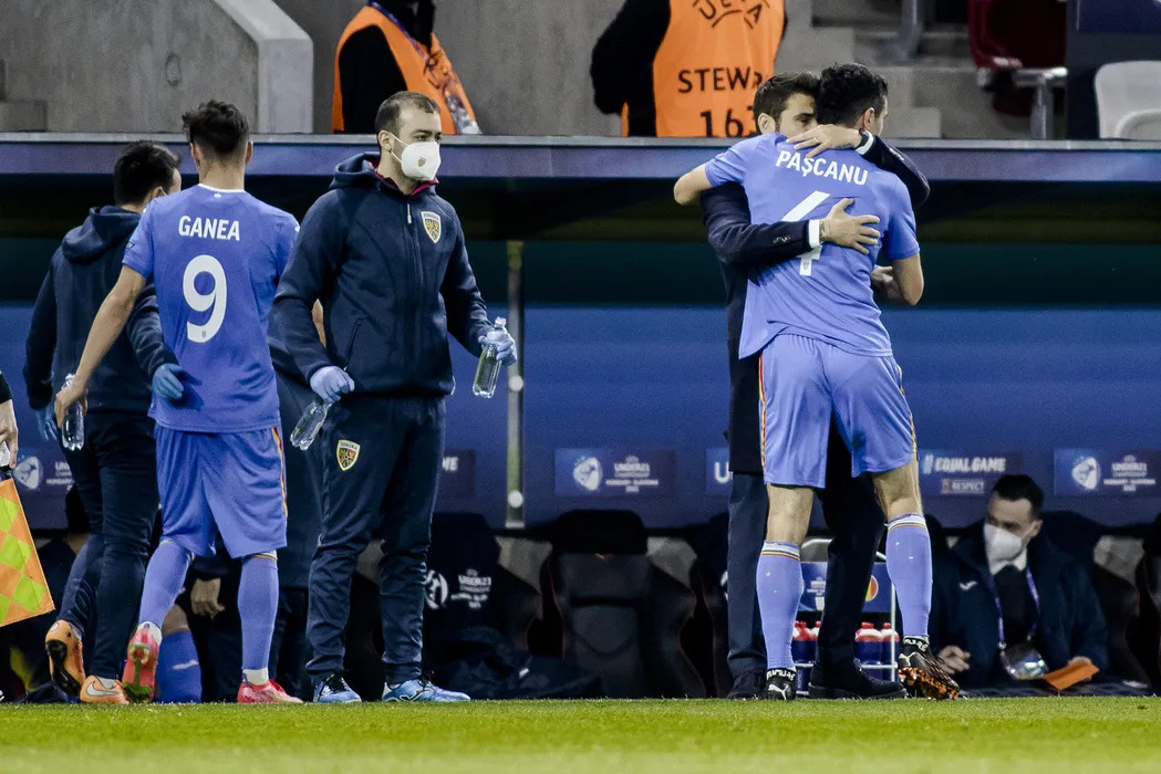 Alexandru Pascanu si Adrian Mutu in meciul de fotbal dintre Ungaria U21 si Romania U21, contand pentru Campionatul European U21, desfasurat pe Bozsik Arena din Budapesta, sambata 27 martie 2021. © FOTO:Sorin Pana/SPORT PICTURES