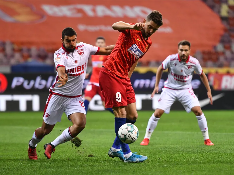 Alexander David Gonzalez Sibulo si Sergiu Florin Bus in meciul de fotbal dintre FCSB si Dinamo Bucuresti, contand pentru Liga 1 Casa Pariurilor, desfasurat fara spectatori pe Arena Nationala din Bucuresti, sambata 3 octombrie 2020. © FOTO:Razvan Pasarica/SPORT PICTURES