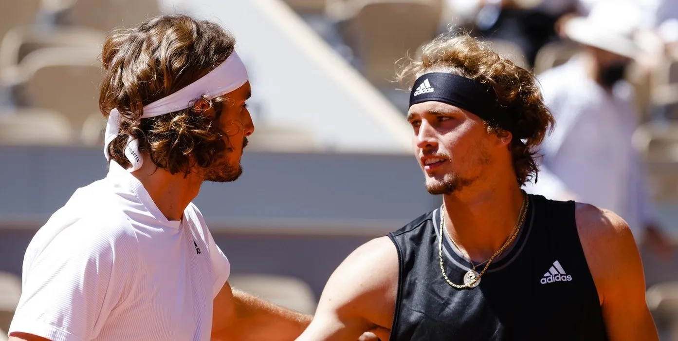 Alexander Zverev (r) and Stefanos Tsitsipas.