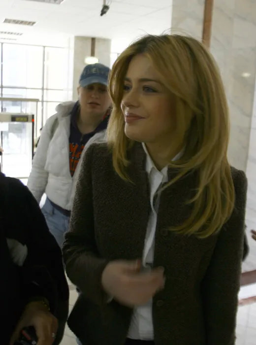 Alexandra Dinu, fosta sotie a fotbalistului Adrian Mutu, soseste la Tribunalul Bucuresti, joi, 1 martie 2007. Magistratii care judeca cererea lui Mutu de a-i fi micsorate despagubirile pe care acesta trebuie sa le plateasc㠦ostei sotii au cerut comisie rogatorie prin care sa se stabileasca exact ce venituri obtine fotbalistul in Italia. BOGDAN MARAN / MEDIAFAX FOTO