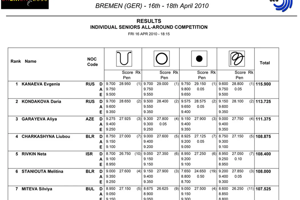 Alexandra Piscupescu,** locul 15 la europenele de gimnastică ritmică