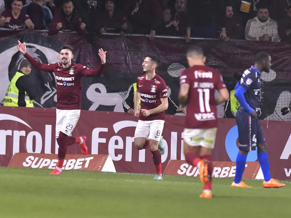 Alexandru Cristian Albu se bucura dupa un gol marcat in meciul de fotbal dintre Rapid Bucuresti si FC Botosani, contand pentru Play-out-ul Ligii 1 Casa Pariurilor, desfasurat pe Stadionul Rapid Giulesti din Bucuresti, sambata 2 aprilie 2022. © FOTO:Razvan Pasarica/SPORT PICTURES