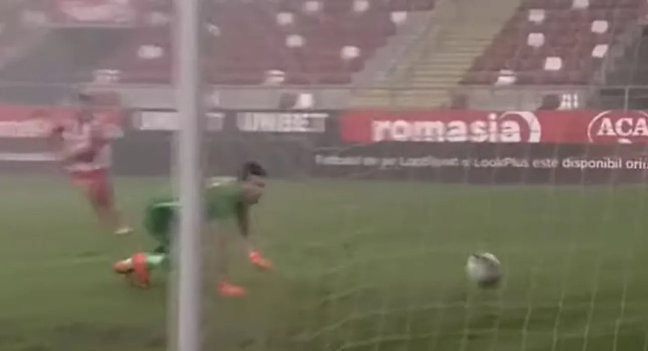 Alexandru Buzbuchi, portarul lui Gaz Metan Mediaș, gafă incredibilă în meciul cu UTA Arad! Nici condițiile meteo nu l-au ajutat | VIDEO