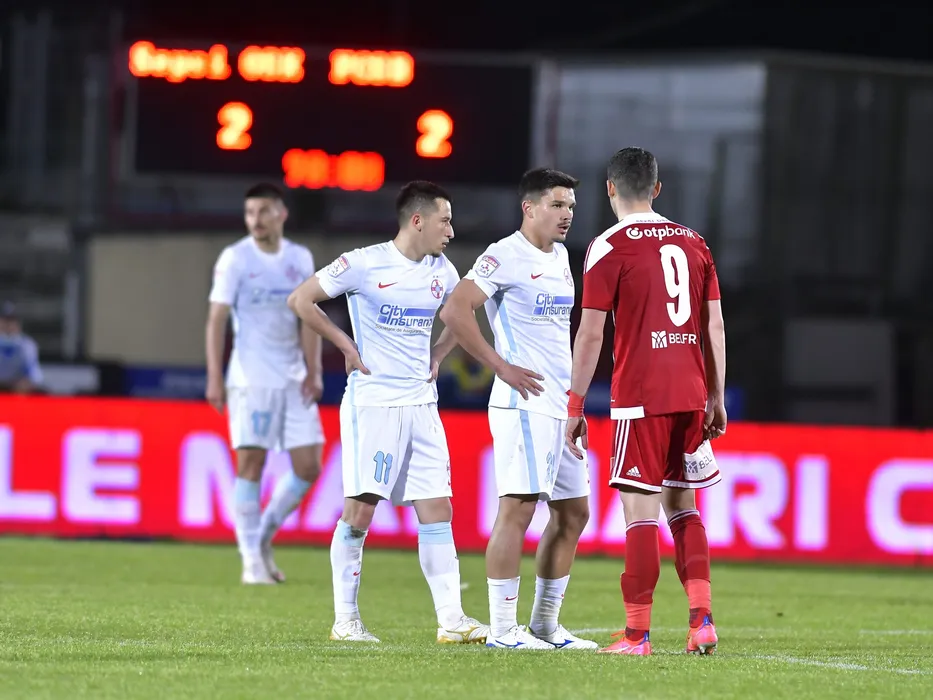 Olimpiu Vasile Morutan si Alexandru Daniel Buziuc suparati dupa meciul de fotbal dintre Sepsi OSK Sfantu Gheorghe si FCSB, contand pentru Play-off-ul Ligii 1 Casa Pariurilor, desfasurat fara spectatori pe Stadionul Municipal din Sfantu Gheorghe, duminica 16 mai 2021. © FOTO:Razvan Pasarica/SPORT PICTURES