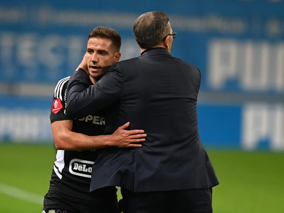 Eugen Neagoe il imbratiseaza pe Mihaita Alexandru Chipciu dupa eliminarea din meciul de fotbal dintre Universitatea Craiova si Universitatea Cluj, contand pentru Superliga Superbet, desfasurat pe Stadionul Ion Oblemenco din Craiova, sambata 5 noiembrie 2022. © FOTO:Razvan Pasarica/SPORT PICTURES