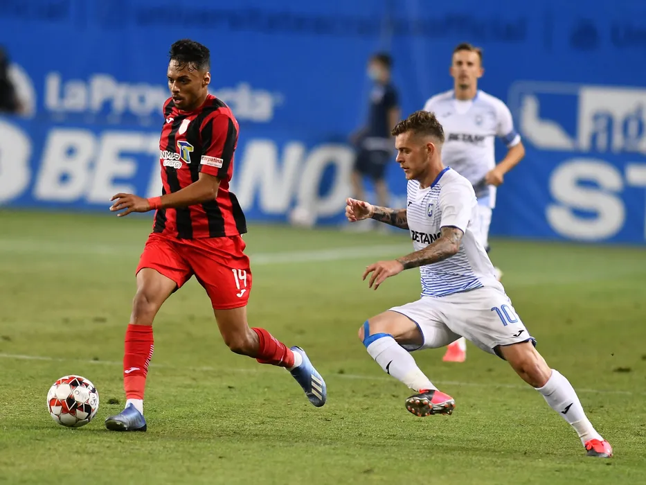 Raoul Baicu si Alexandru Cicaldau in meciul de fotbal dintre Universitatea Craiova si Astra Giurgiu, contand pentru play-off-ul Ligii 1 Casa Pariurilor, disputat fara spectatori pe Stadionul Ion Oblemenco din Craiova, vineri 19 iunie 2020. © FOTO:Razvan Pasarica/SPORT PICTURES