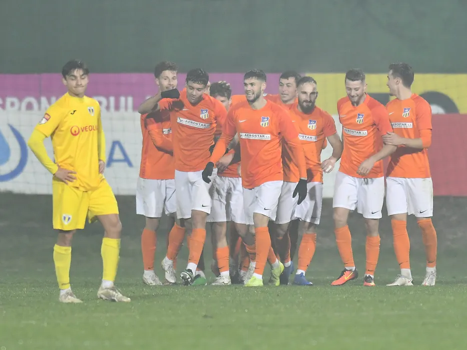 Bucurie a fotbalistilor bacauani dupa un gol marcat cu Alexandru Zaharia, Alexandru Corban si Alecsandru Andrei in meciul de fotbal dintre Petrolul Ploiesti si Aerostar Bacau, contand pentru Liga a-2-a Casa Pariurilor, desfasurat fara spectatori pe Terenul central al Centrului National de Fotbal de la Mogosoaia, luni 16 noiembrie 2020. © FOTO:Razvan Pasarica/SPORT PICTURES