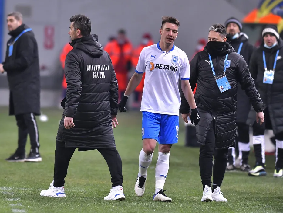 Marinos Ouzounidis si Alexandru Mateiu in meciul de fotbal dintre Universitatea Craiova si FC Hermannstadt, contand pentru Liga 1 Casa Pariurilor, desfasurat fara spectatori pe Stadionul Ion Oblemenco din Craiova, vineri 19 februarie 2021. © FOTO:Razvan Pasarica/SPORT PICTURES