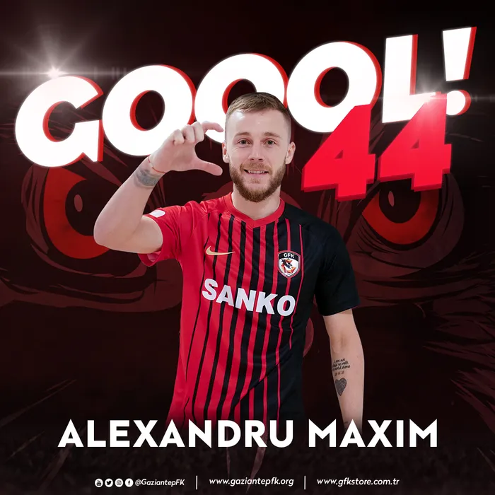 Alexandru Maxim, debut spectaculos pentru Gaziantep! A reușit ”dubla” în fața liderului din Turcia și a contribuit la un alt gol | VIDEO