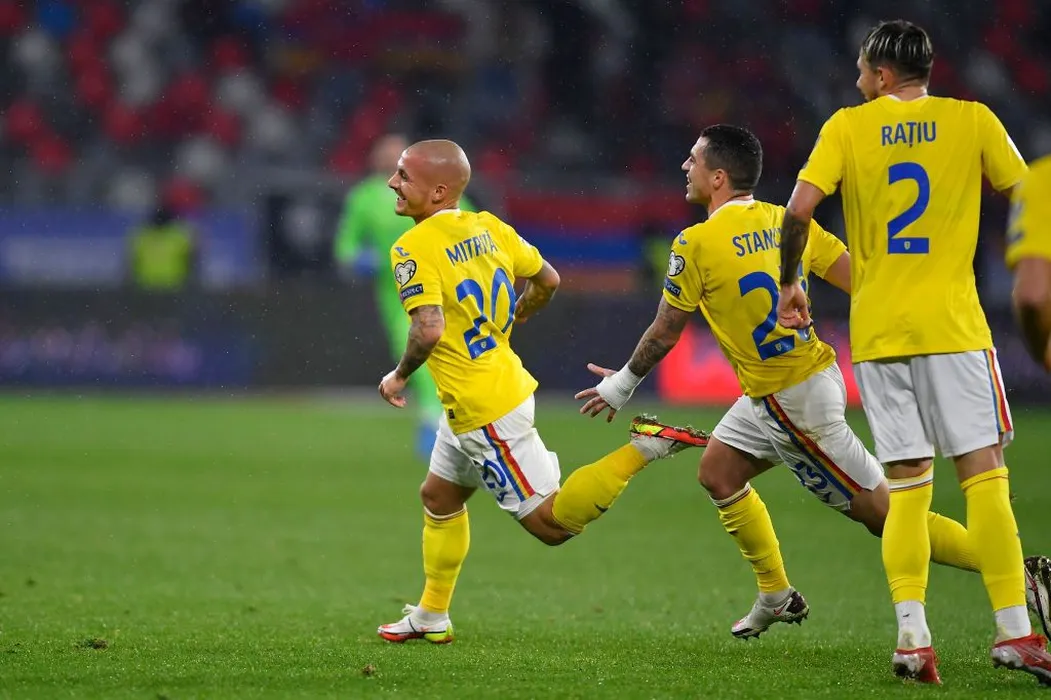Ionut Mitrita celebrates during the FIFA World Cup Qatar 2022 qualification Group J football match between Romania and Armenia in Bucharest, Romania, on October 11, 2021. (Photo by Alex Nicodim/NurPhoto via Getty Images)