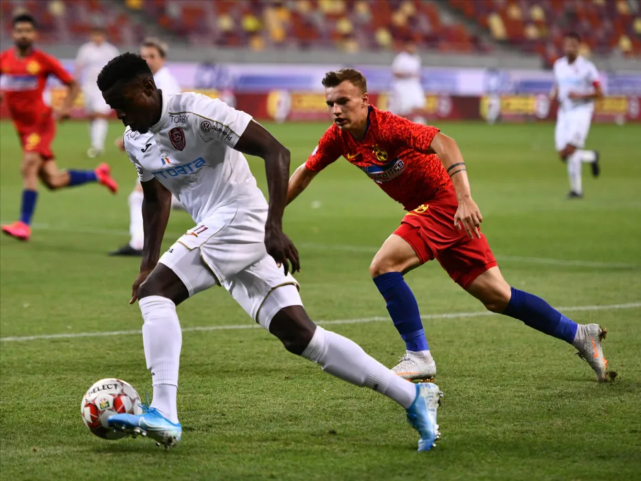 Michael Pereira si Grigoras Alexandru Pantea in meciul de fotbal dintre FCSB si CFR Cluj, contand pentru play-off-ul Ligii 1 Casa Pariurilor, disputat fara spectatori pe Arena Nationala din Bucuresti, vineri 31 iulie 2020. © FOTO:Razvan Pasarica/SPORT PICTURES