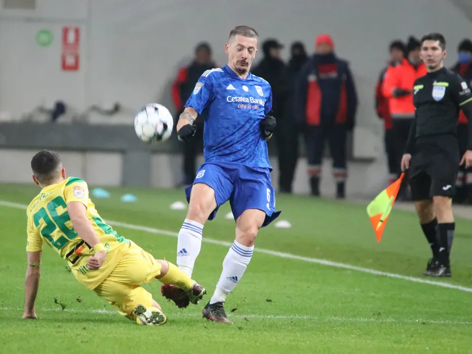 Alexandru Vlad Achim si Gabriel Dorinel Oancea in meciul de fotbal dintre FC U Craiova 1948 si CS Mioveni, contand pentru Liga 1 Casa Pariurilor, desfasurat pe Stadionul Ion Oblemenco din Craiova, luni 20 decembrie 2021. © FOTO:Catalin Ciupureanu/SPORT PICTURES