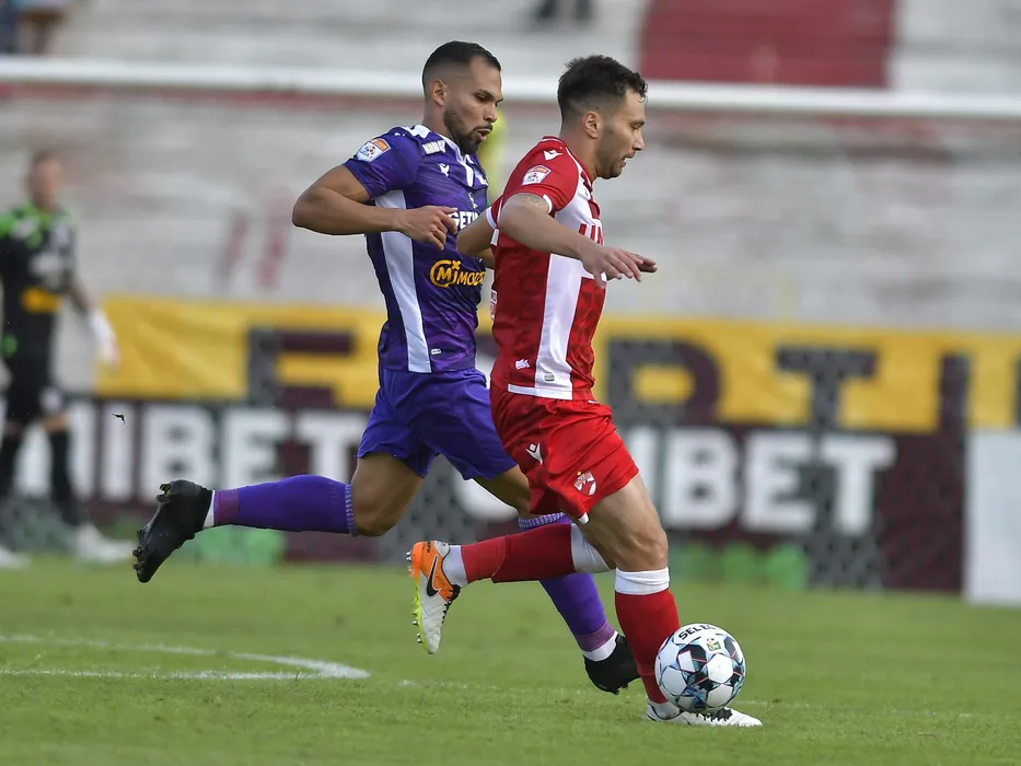 Cesar Daniel Meza Colli si Alexandru Ilie Rauta in meciul de fotbal dintre Dinamo Bucuresti si FC Arges, contand pentru Liga 1 Casa Pariurilor, desfasurat pe Stadionul Dinamo din Bucuresti, sambata 28 august 2021. © FOTO:Razvan Pasarica/SPORT PICTURES