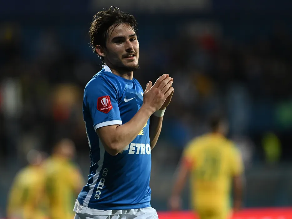 Alexi Paul Pitu se bucura dupa un gol marcat in meciul de fotbal dintre Farul Constanta si CS Mioveni, contand pentru Superliga Superbet, desfasurat pe Stadionul central al Academiei Gheorghe Hagi din Ovidiu, vineri 4 noiembrie 2022. © FOTO:Razvan Pasarica/SPORT PICTURES