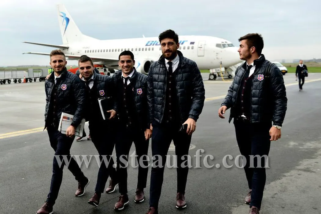 „Alo, am ajuns cu bine!” Steliștii au fost întâmpinați de fani la Aalborg. „3.000 de români vor fi în tribune”, a spus antrenorul echipei daneze | FOTO