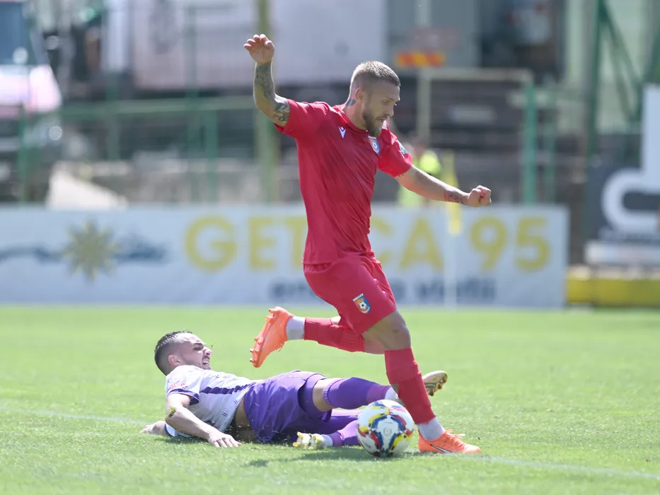 Catalin Golofca si Ionut Radescu in meciul de fotbal dintre FC Arges si Chindia Targoviste, contand pentru Liga a-2-a Casa Pariurilor, desfasurat pe Stadionul Orasenesc din Mioveni, sambata 26 august 2023. © FOTO:Razvan Pasarica/SPORT PICTURES