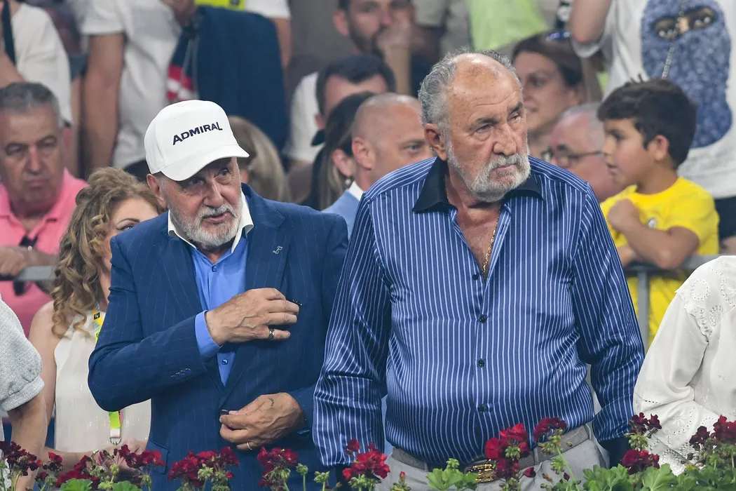 Ion Tiriac and Ilie Nastase are attending a tennis demo event during a sports festival in Cluj-Napoca, Romania, on June 15, 2024.