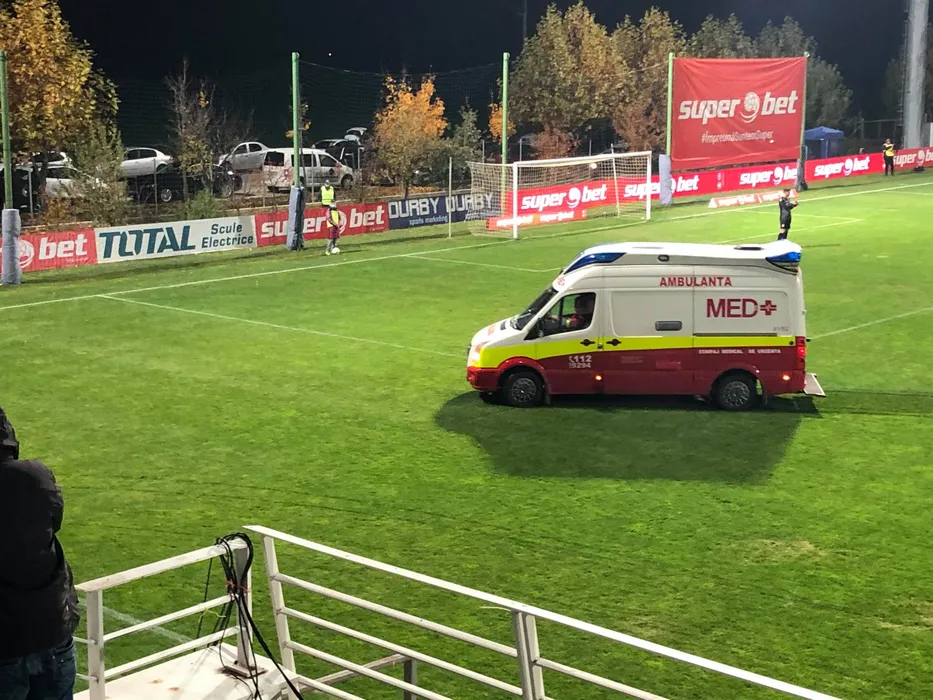 Ambulanța a intrat pe teren în timpul derby-ului dintre Rapid și Universitatea Cluj. Panică la Buftea | FOTO & VIDEO