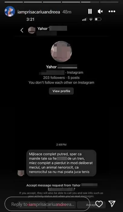 Amenințări și jigniri barbare primite de o româncă, după ce a pierdut de la set și 5-3 în semifinale: „T…ă urâtă, să-ți cumperi lumânări!” Sportiva a publicat mesajele șocante. FOTO