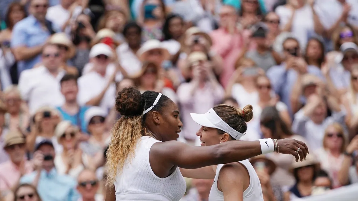 Simona Halep of Romania and Serena Williams of U.S.A. hold each other after the ladies' singles final of the Championships, Wimbledon at the All England Lawn Tennis and Croquet Club in London, United Kingdom on July 13, 2019. Simona Halep won the event to claim the championship.,Image: 688280008, License: Rights-managed, Restrictions: This content is intended for editorial use only. For other uses, additional clearances may be required.