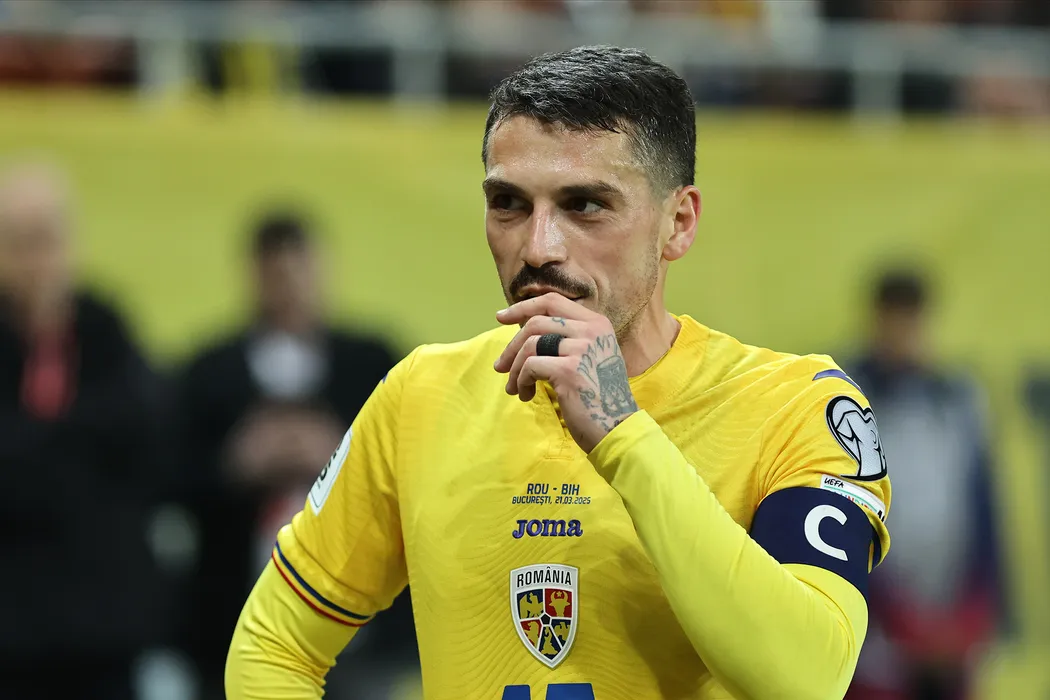 Nicolae Stanciu, de la echipa nationala de fotbal a Romaniei, reactioneaza in timpul meciului contra selectionatei Bosniei din preliminariile Campionatului Mondial 2026, disputat pe Arena Nationala din Bucuresti, vineri, 21 martie 2025. GEORGE FILIP / MEDIAFAX FOTO